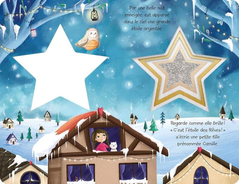"Une petite fille aperçoit une étoile briller. Elle lui confie ses rêves : monter sur le traîneau du Père Noël, jouer avec les ours polaires, patiner avec les pingouins et danser autour d'un feu de bois."